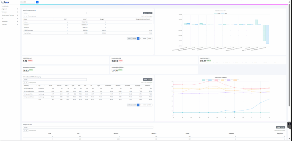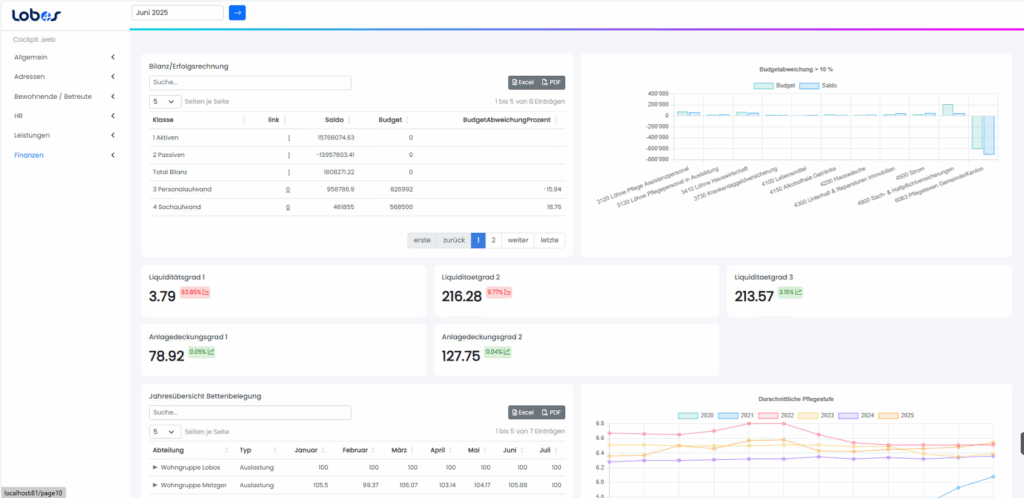 Mit Cockpit .web bietet Lobos4 eine leistungsstarke Lösung, um Informationen dezentral, aktuell und jederzeit verfügbar bereitzustellen. Berichte und Listen werden direkt aus der Lobos4-Datenbank in Echtzeit generiert – ganz ohne Umwege. Die Ergebnisse lassen sich als dynamische Ansichten am Bildschirm darstellen oder bei Bedarf bequem als Excel- oder PDF-Datei exportieren.